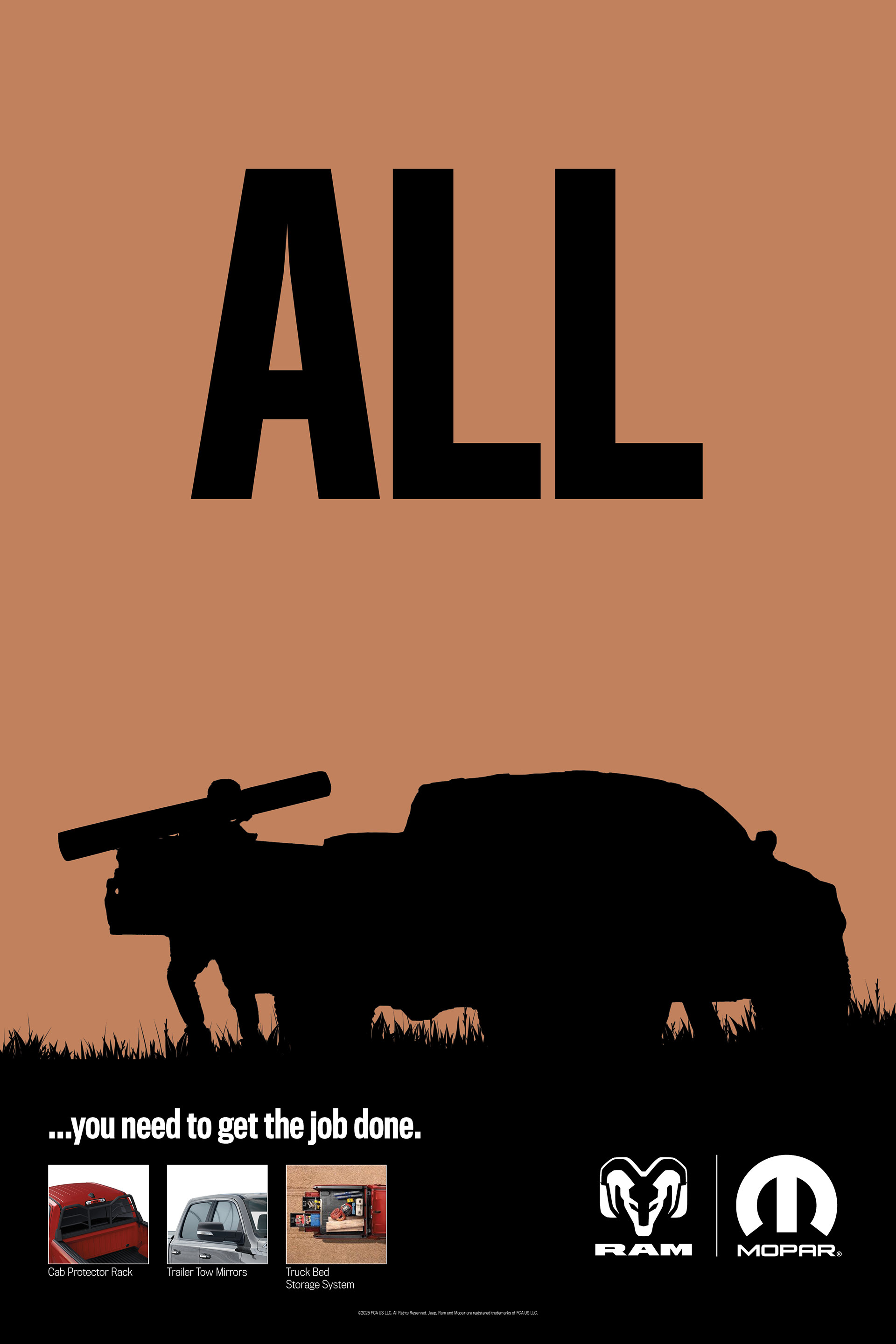 Through a curated dealer kit, we created dealership materials to remind consumers about the moments where they need to get the most out of there Jeep and Ram vehicles. We told them to just Go All Out.